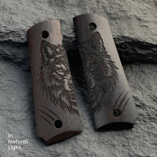 1911 Full Size Black Ebony Pistol Grips Bas-relief Wolf
